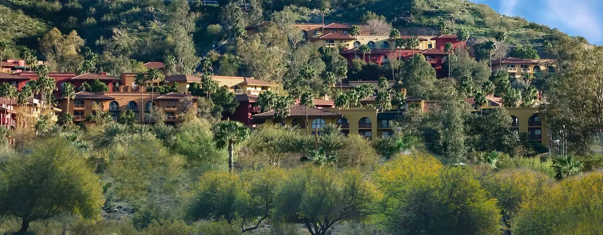 Surrounded by mountain views, our all-suite resort is a 20-minute drive north of downtown Phoenix. We offer seven pools, a 138-foot water slide, private cabanas, waterfalls, a championship golf course, and a full-service spa and salon. A variety of dining options, nearby hiking trails, and seasonal family-friendly amenities are available.