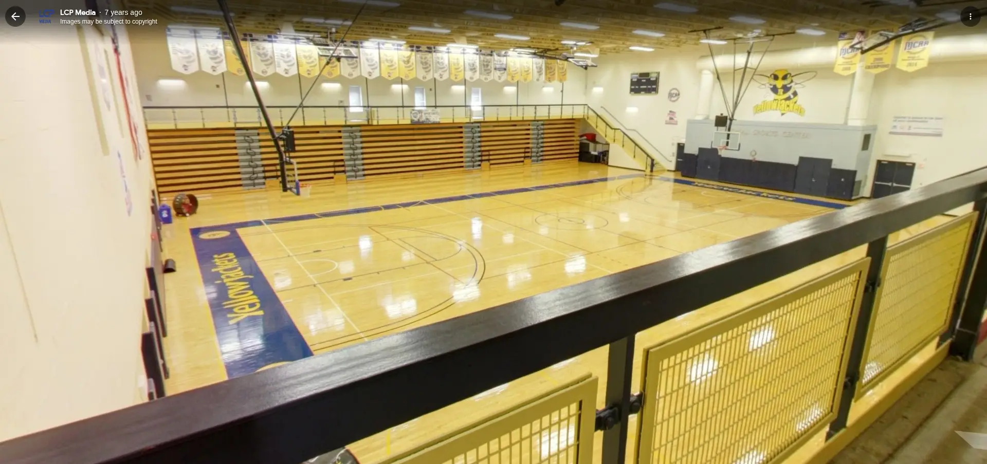 Multipurpose/ Performance Courts: A performance court area consisting of a hardwood floor for two basketball courts and fold-out bleachers for seating up to 1,500 around one court area.